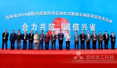 近日,黎明重工受邀參加河南省2014誠信興商宣傳月啟動(dòng)儀式暨商企誠信承諾簽名活動(dòng)。在河南省各廳局領(lǐng)導(dǎo)、各誠信經(jīng)營示范單位和誠信企業(yè)家代表、新聞媒體記者等現(xiàn)場(chǎng)簽名與誠信宣言的見...